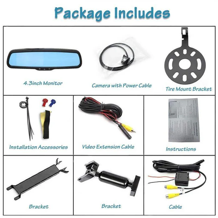 | Package | 1* Tailgate Handle with Backup Camera 1* Car Rear View Anti-Glare Mirror Monitor 1* Video Cable & Power Cable & Extension Cable Accessories & User Manual |