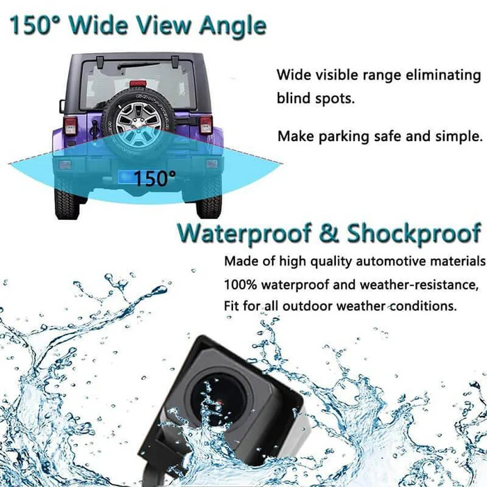 Super Vision: This backup camera with HD color CCD & 150°-degree wide viewing angle, you can check the back situation easier when reversing.